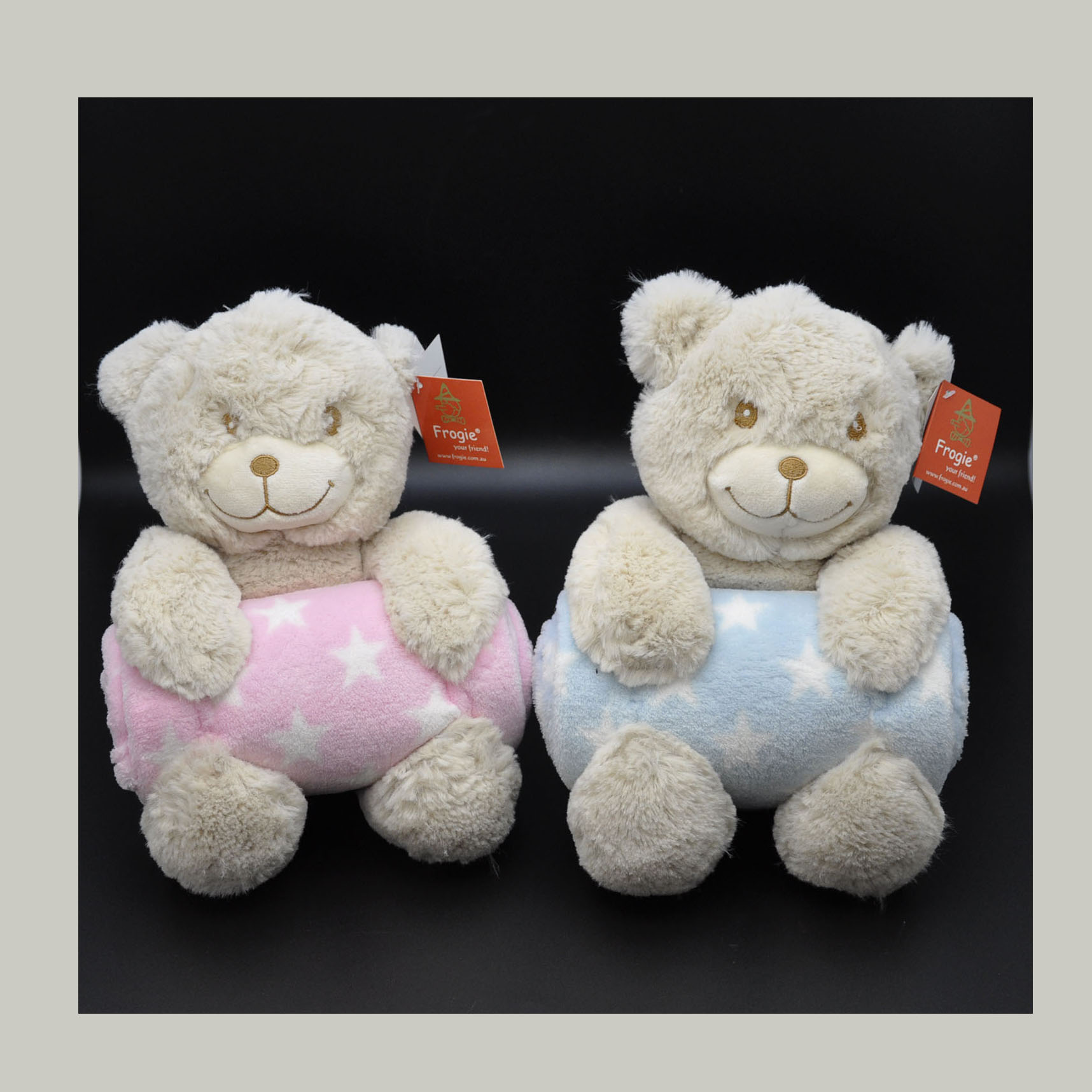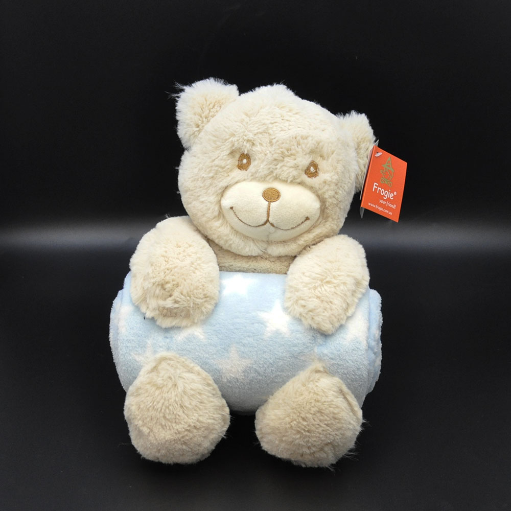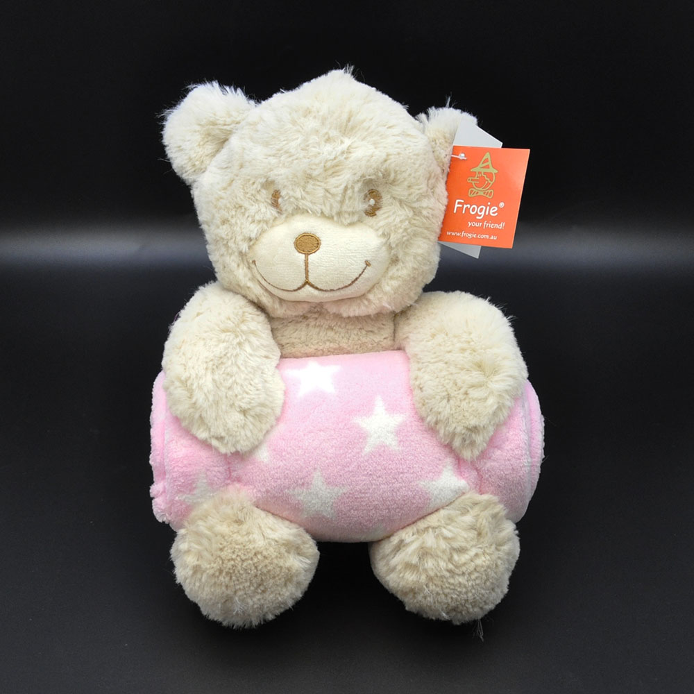 25cm Beidge Bear Holding Pink / Blue Blanket