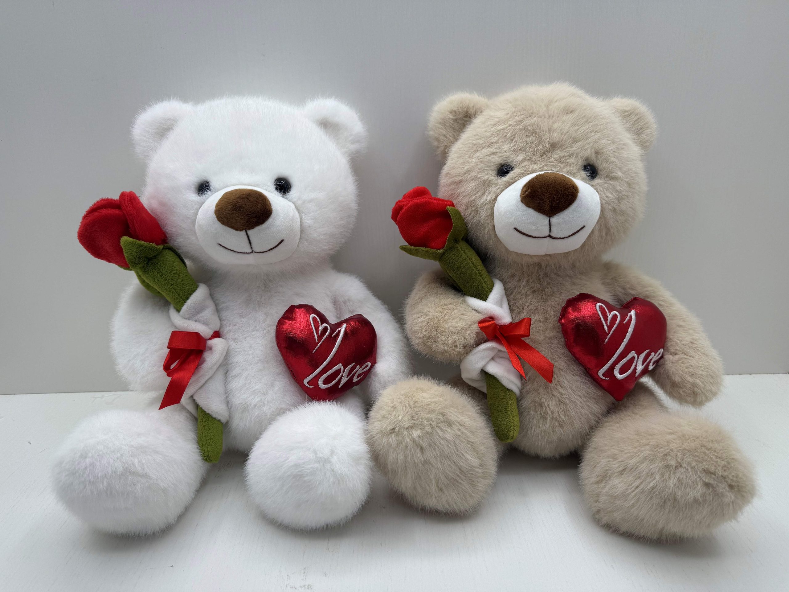 / 28 CM “KINGSLEY” BEAR WITH SINGLE ROSE ( LATTE BROWN / WHITE)